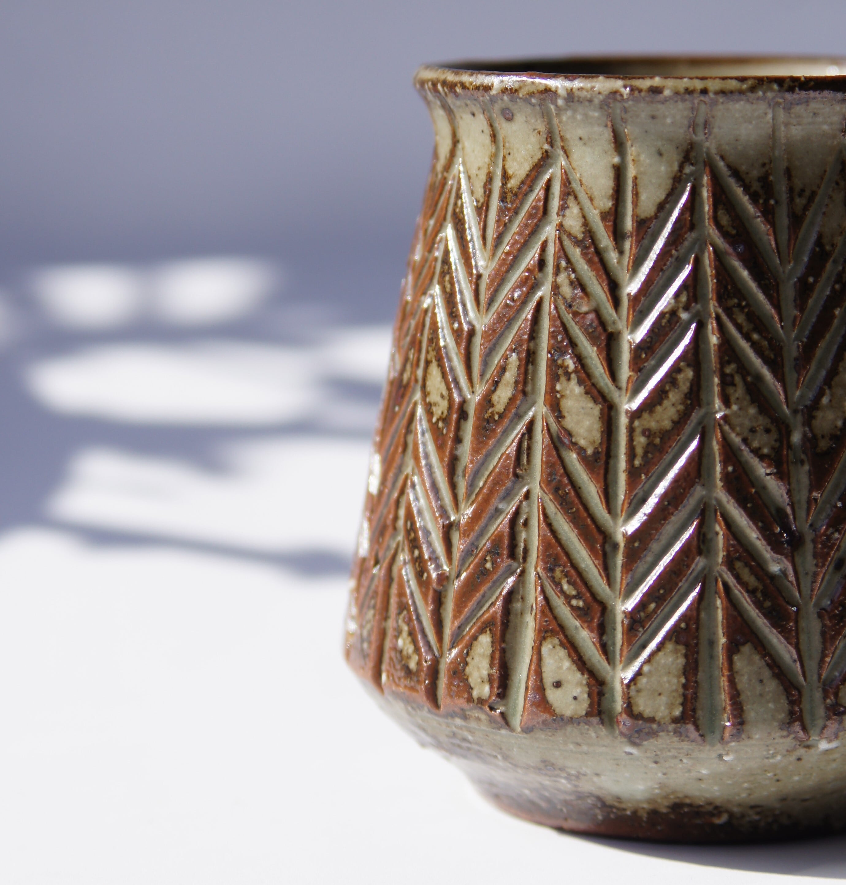 彫刻刀で一つひとつ丁寧に彫られたヤハネ模様は、タナカマナブ氏の代名詞とも言える定番デザイン。
