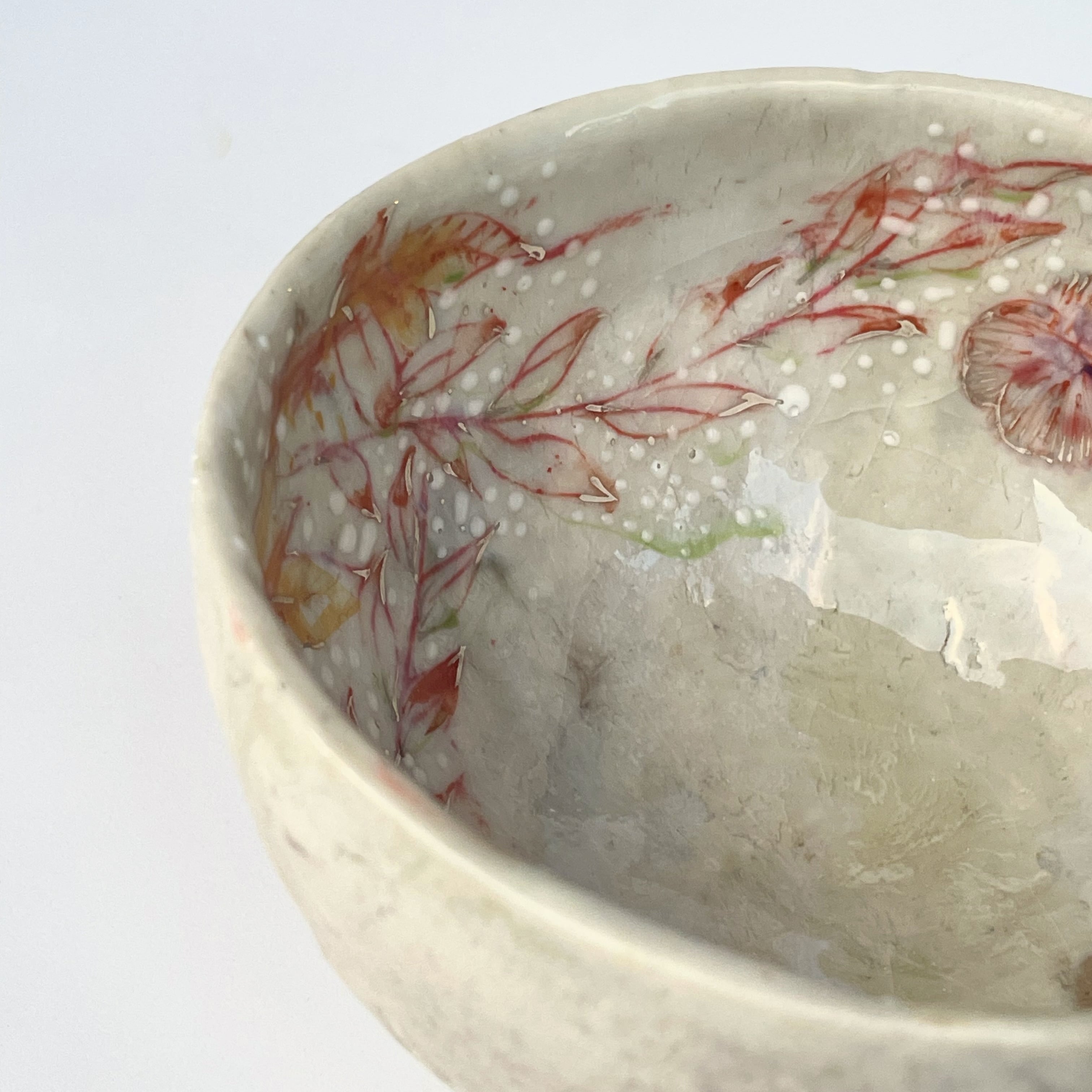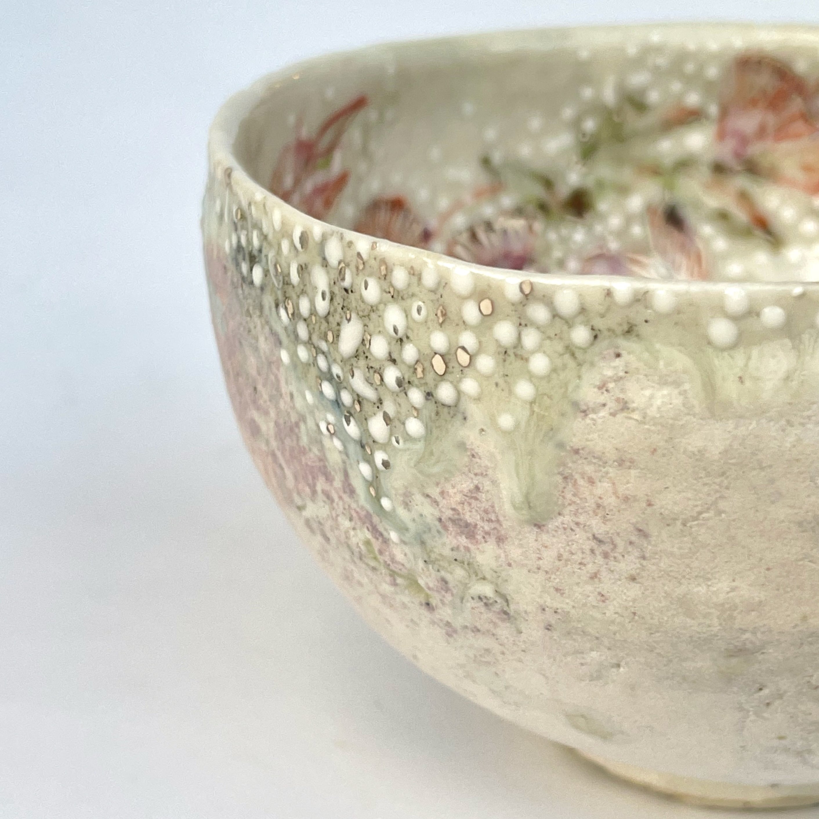 艶やかで、それでいて自然に溶け込む大らかさがある。そよ風のような空気をまとう、色彩ゆたかな器たち。まるで珊瑚が広がる海のなかのような景色もあれば、春の野原を遠くから眺めているような郷愁も感じる。陶芸家・神谷麻穂さんの器には不思議な魅力があります。