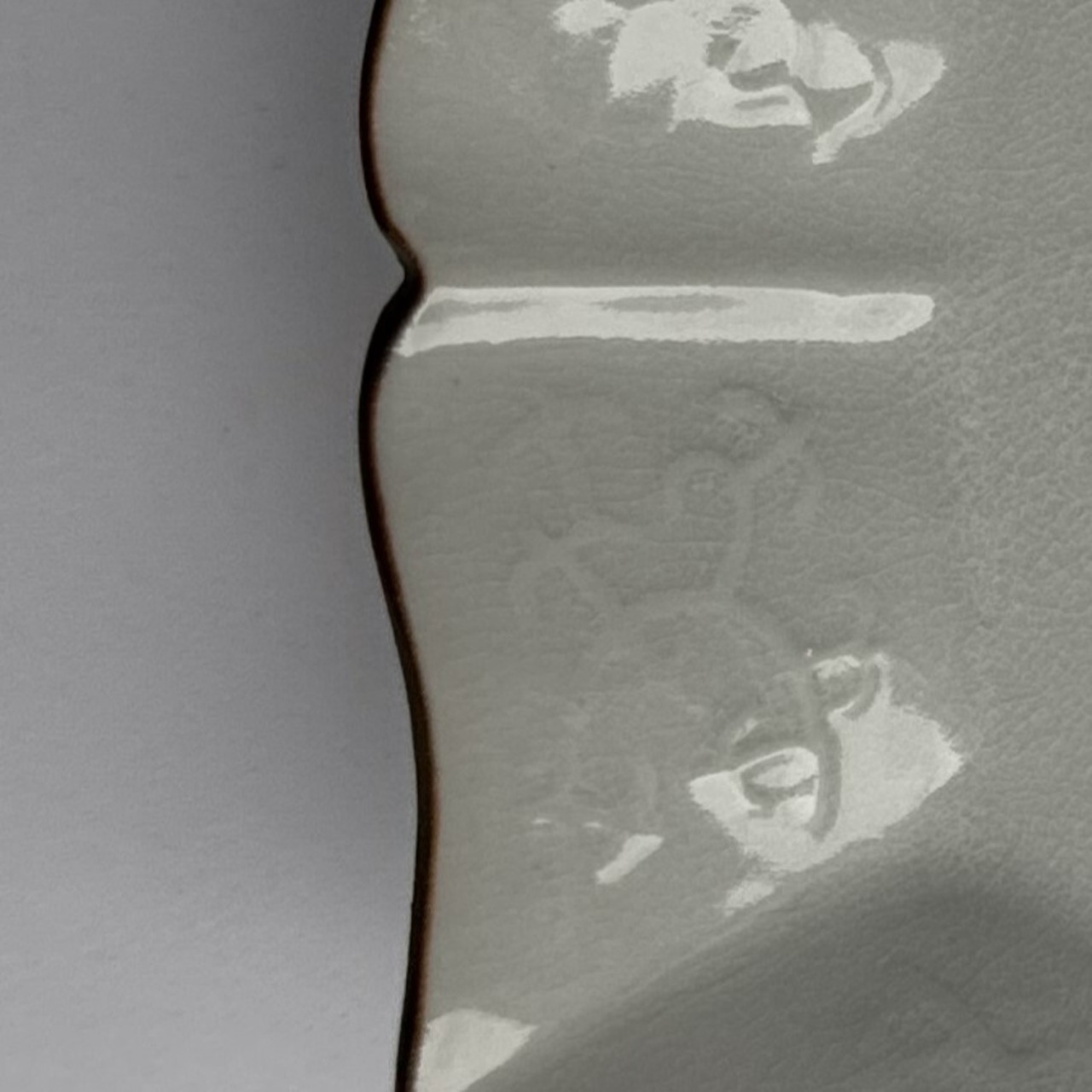 ※照明によって色の印象が異なります。現在流通している一般的な九谷焼に比べて、若干青みがかかった色が特徴です。照明によっては白に見えます。