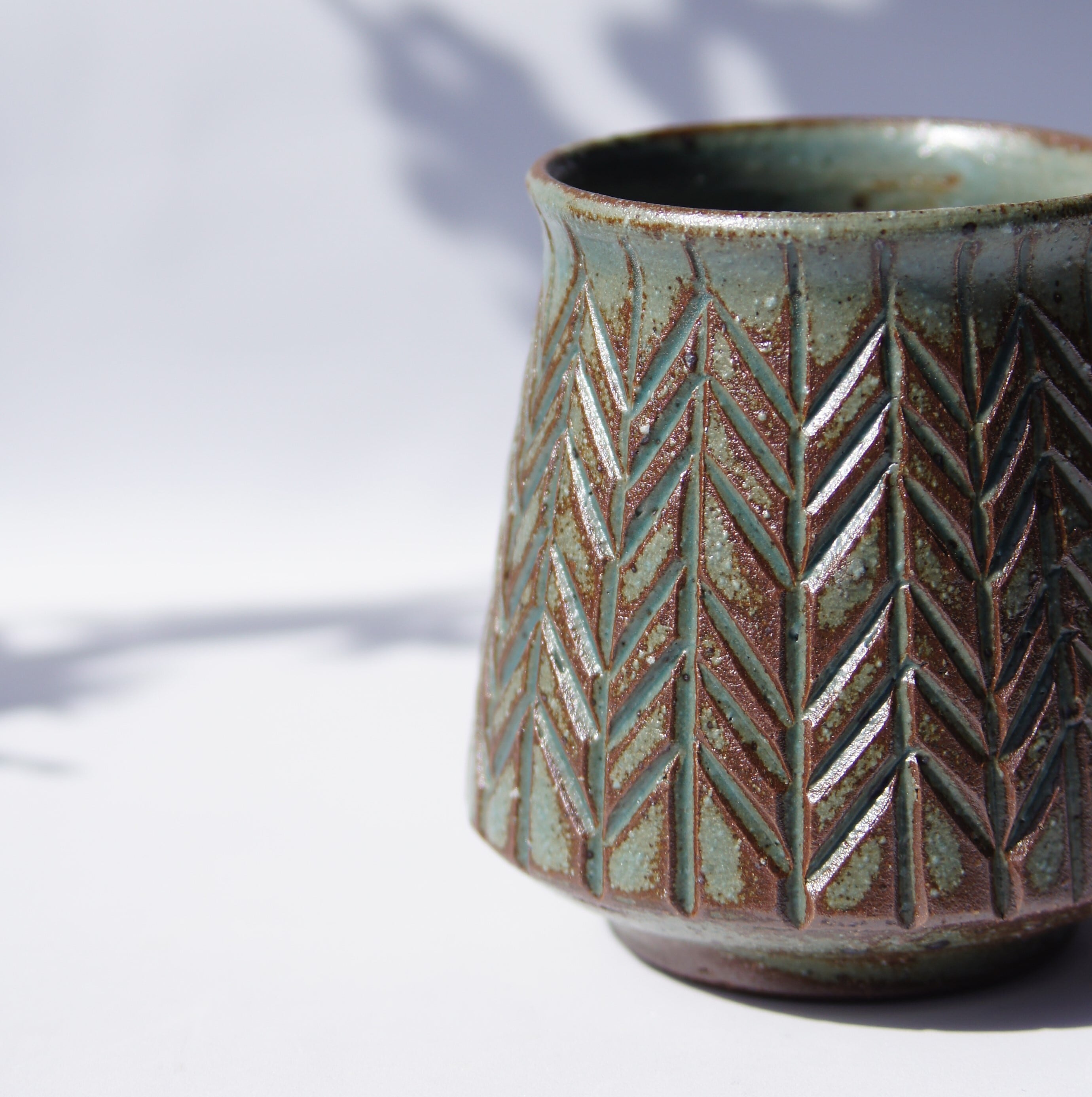 彫刻刀で一つひとつ丁寧に彫られたヤハネ模様は、タナカマナブ氏の代名詞とも言える定番デザイン。シンプルながら存在感のあるデザインは、毎日使っても飽きない魅力があります。